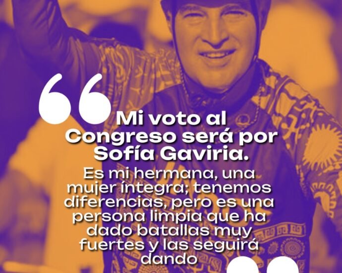 Mi voto al congreso será por Sofia Gaviria Correa . Es mi hermana una mujer integra; tenemos diferencias, pero es una persona limpia que ha dado batallas muy fuertes y las seguirá dando. ANIBAL GAVIRIA